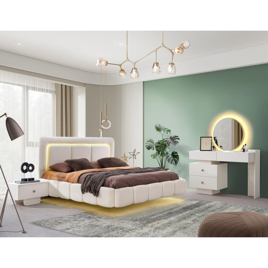 Barcelona Yatak Odası Takımı, organik formları fütüristik tasarım ögeleriyle harmanlayan modern bir lüks anlayışını temsil ediyor. Takımın en dikkat çekici özelliği; akıllıca entegre edilmiş LED aydınlatmalar ve kavisli, modüler iskeleti sayesinde elde edilen "yüzer" (floating) görünümüdür.